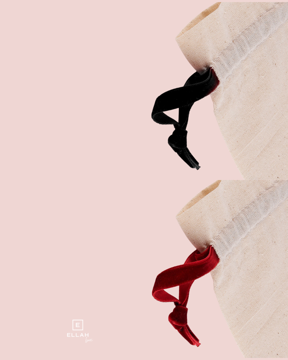 🍭 Bolsa de tela de tela natural con los cordones de un elegante y suave terciopelo en negro o en color granate (a elegir) perfecta para envolver un regalo para tu amiga o la novia de forma original.
