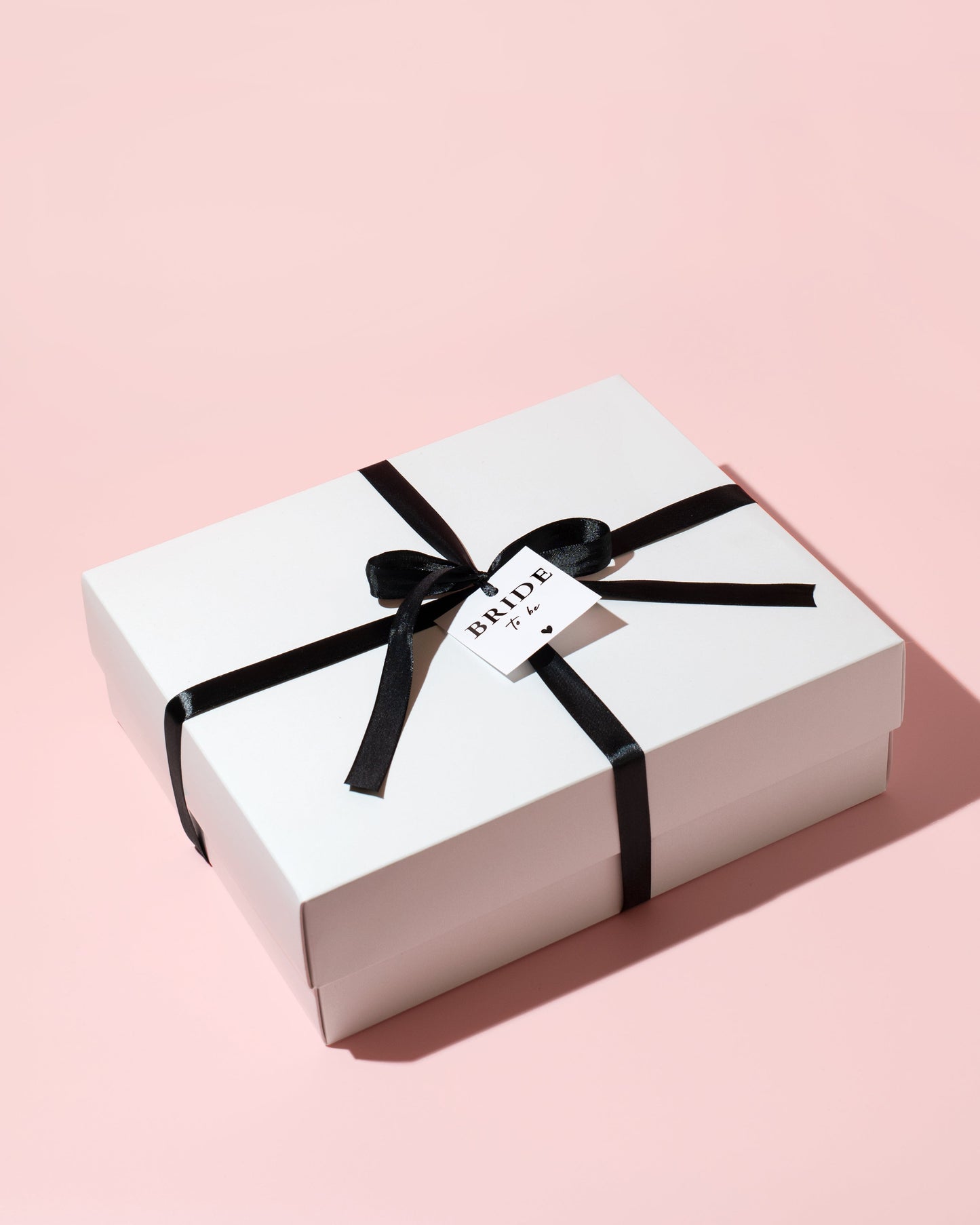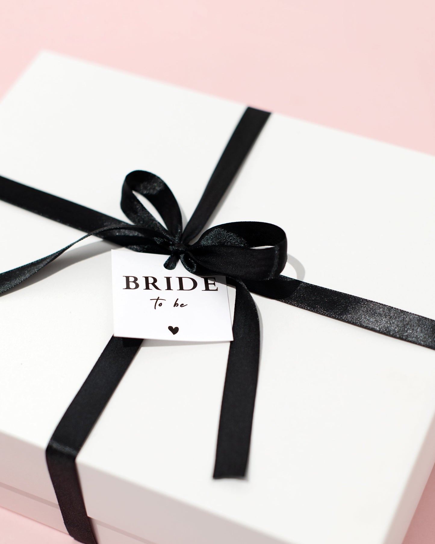 Los regalos que elijas vendrán dentro de la cajita que elijas con la cinta de satén, el cartelito de "bride", una tarjeta para que escribas una nota y chuches, ¡para endulzar aún más ese momento!