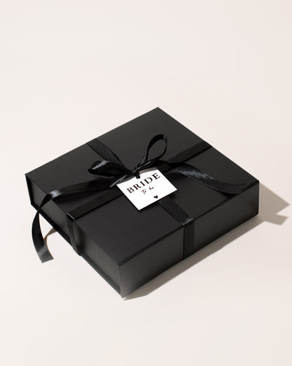 Los regalos que elijas vendrán dentro de la cajita que elijas con la cinta de satén, el cartelito de "bride", una tarjeta para que escribas una nota y chuches, ¡para endulzar aún más ese momento!