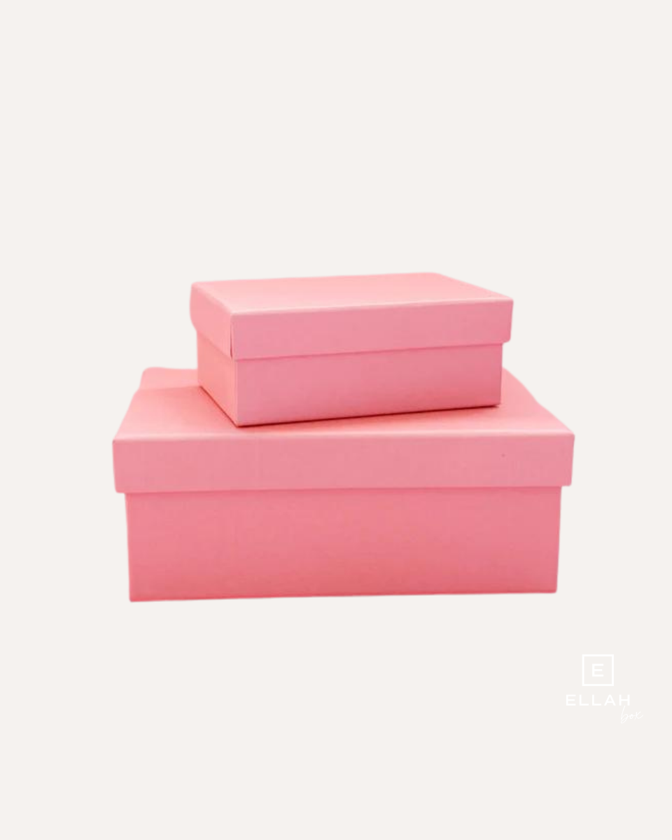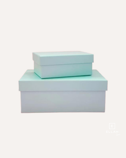 - Las cajas son rectangulares y de cartón duro con plastificado de gran calidad en colores rosa suave o mint (aguamarina suave).