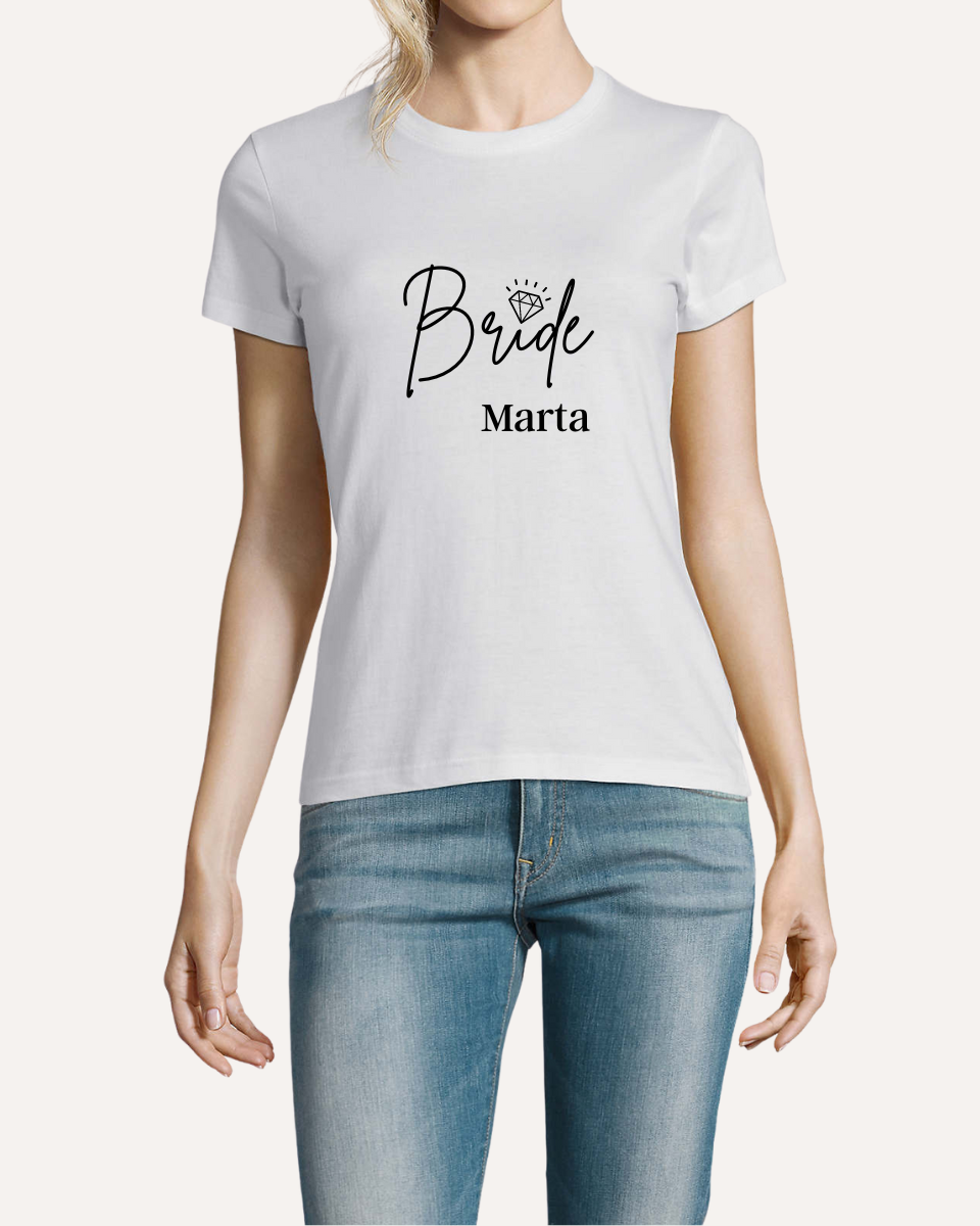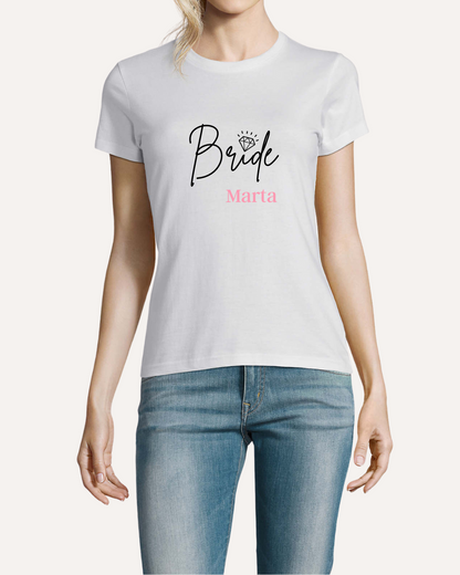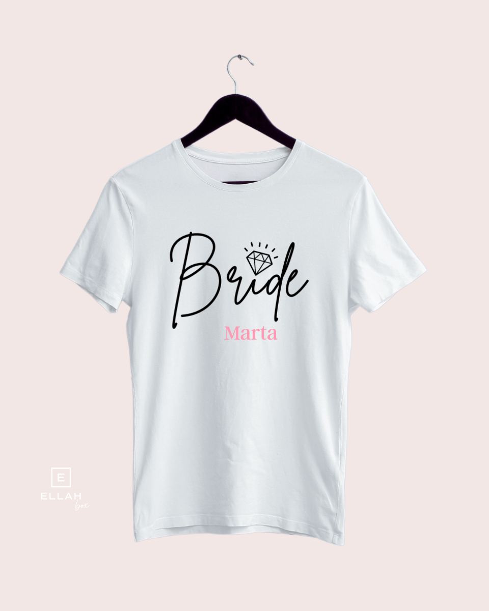 - Color blanco con "Bride" en letras rosas + nombre personalizado
