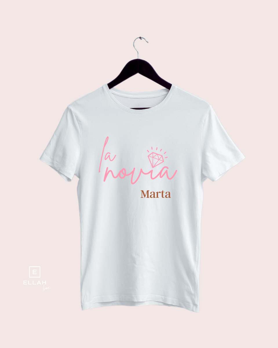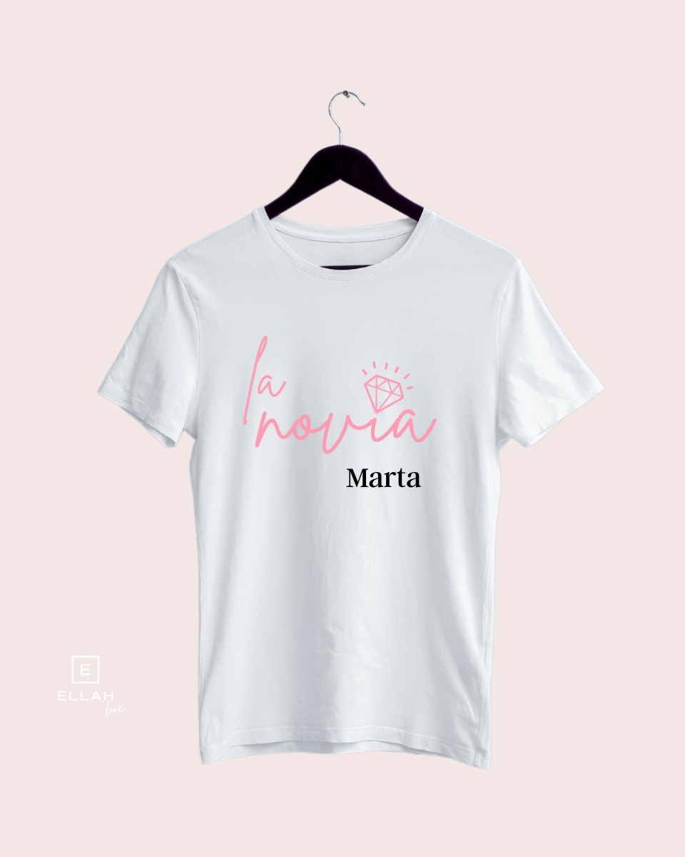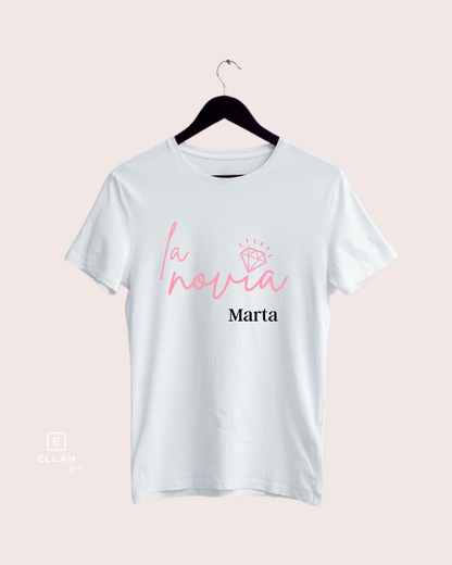 - Color blanco con "La Novia" en letras rosas + nombre personalizado