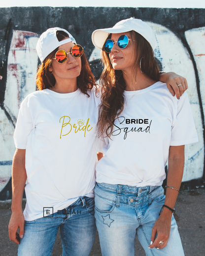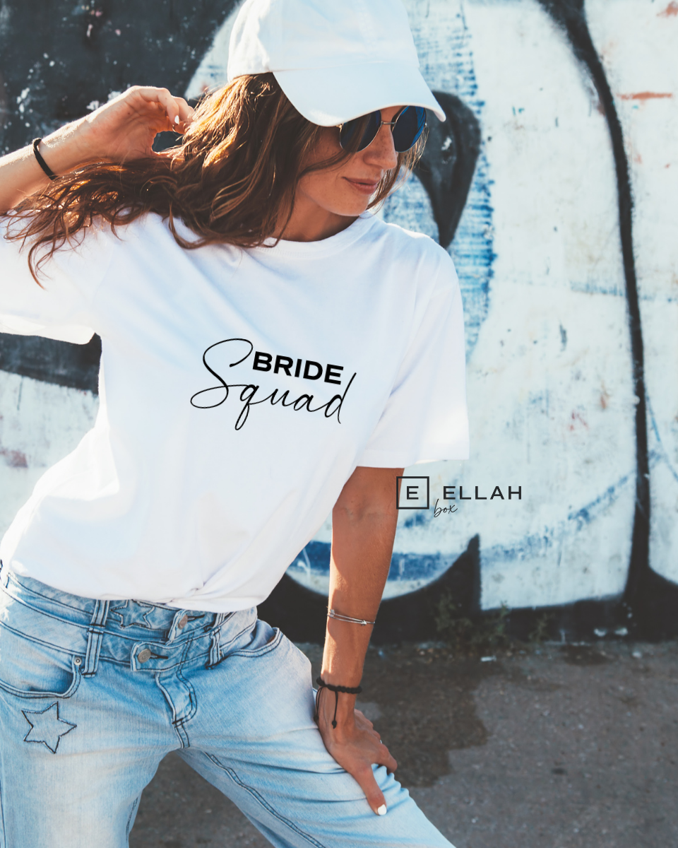 Hemos diseñado estas camisetas de despedida de soltera "Bride Squad" para tenerlas en Ellah porque... ¿qué es una despedida de soltera sin las camisetas identificativas? Es un absoluto must-have para todo fiestón pre-wedding.