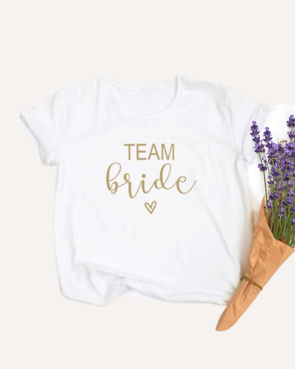 Hemos diseñado estas camisetas de despedida de soltera "Team Bride" para tenerlas en Ellah porque... ¿qué es una despedida de soltera sin las camisetas identificativas? Es un absoluto must-have para todo fiestón pre-wedding.