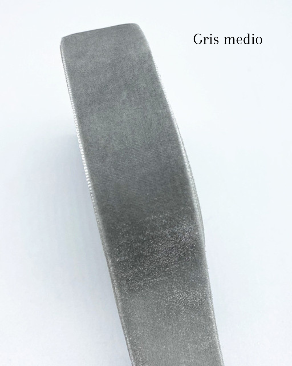 Cinta de terciopelo de color gris claro/medio, perfecta para tu ramo de novia y como complemento original de tu vestido de novia para darle el toque final al look.