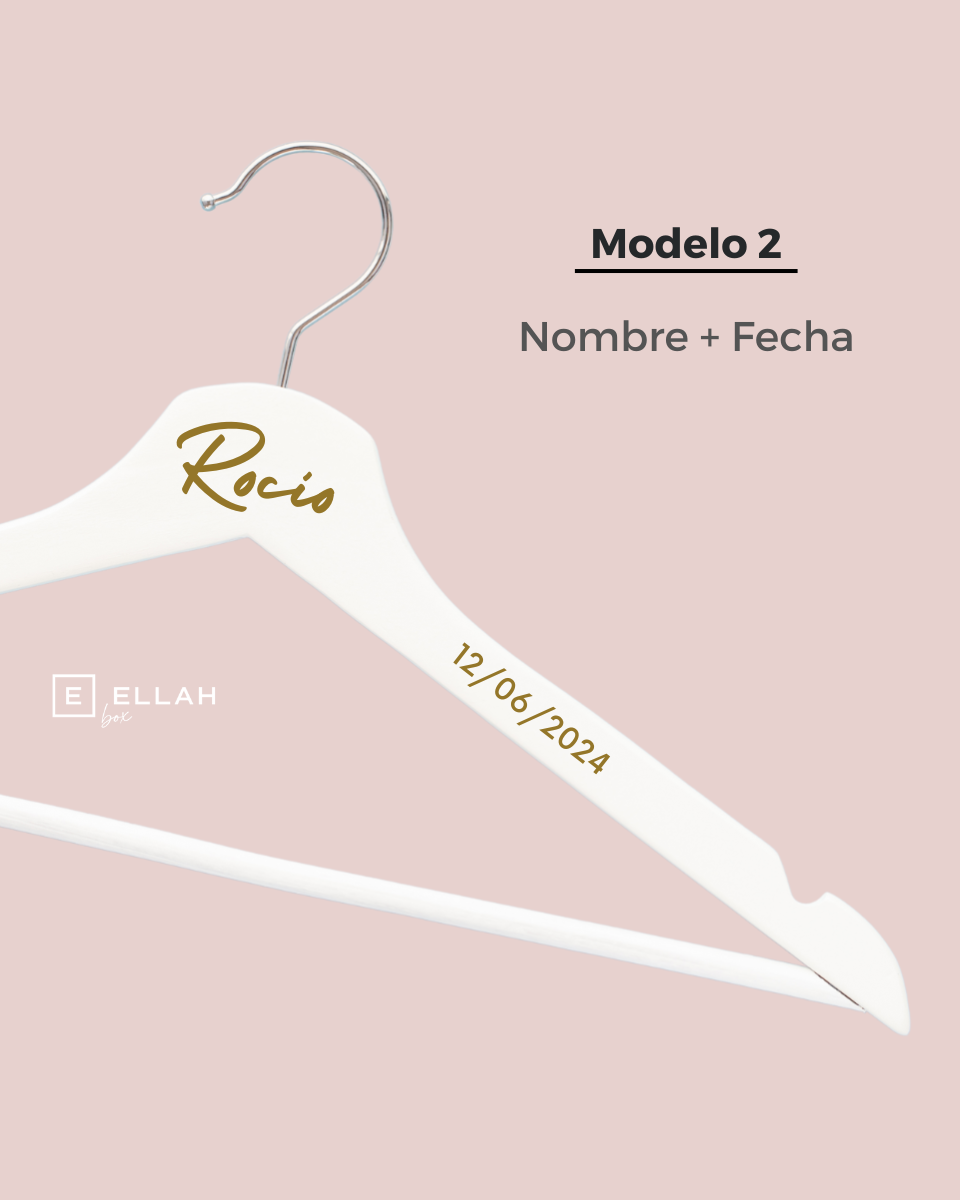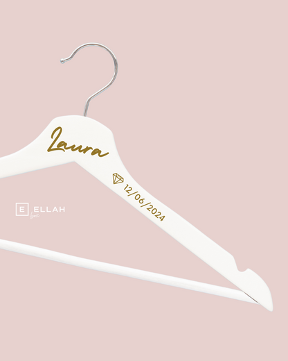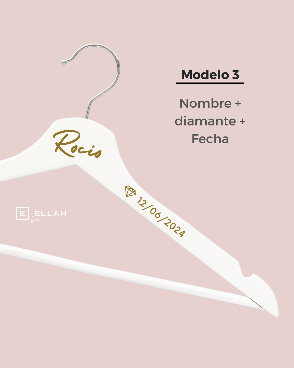 ⭐ Es una elegante percha que puedes personalizar con tu nombre, la fecha de la boda y/o un pequeño diamante.