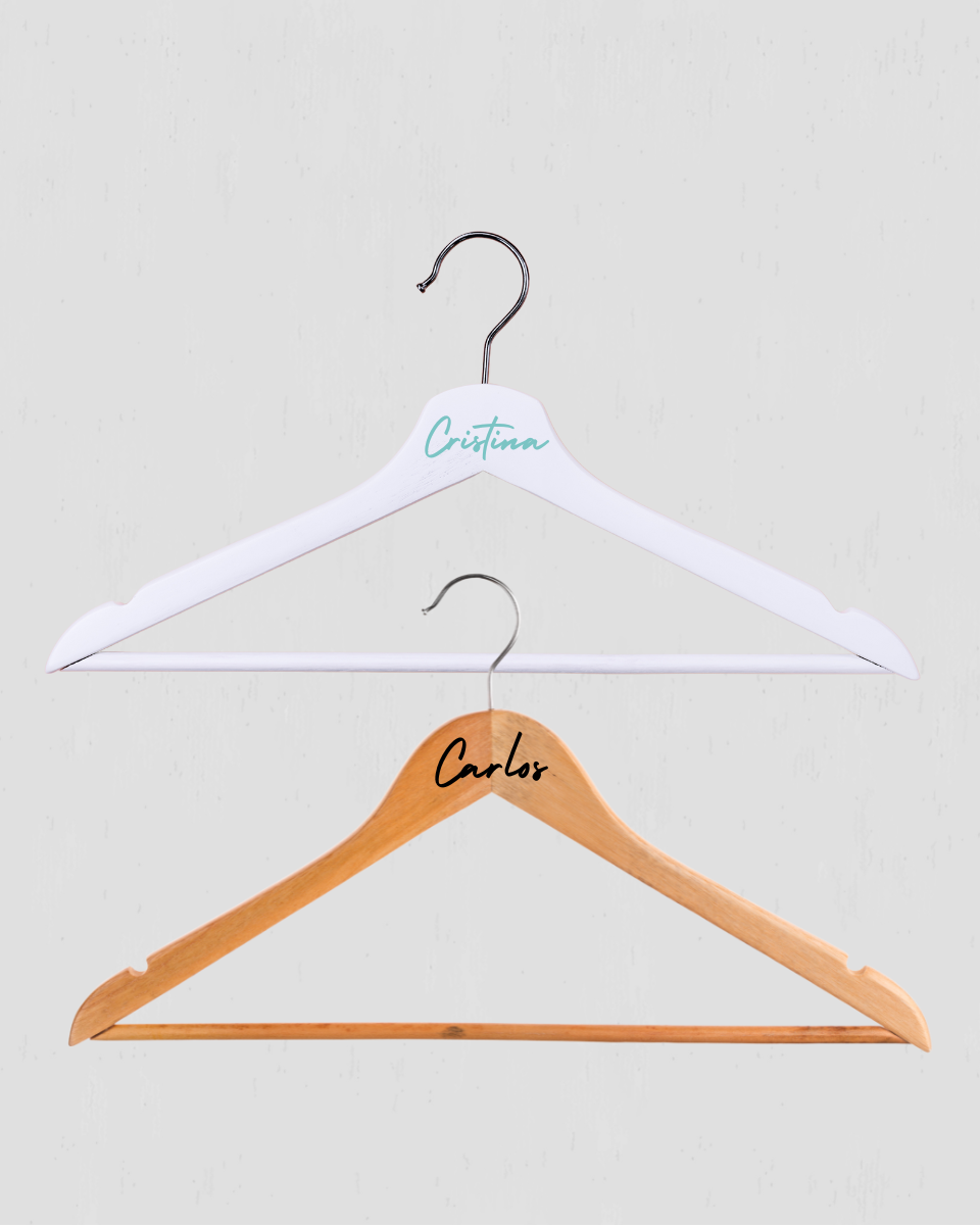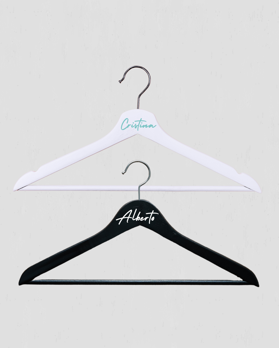 No hay mejor recuerdo y regalo que una percha blanca con el nombre de la novia y la fecha de la boda. Esta percha de madera blanca es perfecta para colgar el vestido de novia, hacerle foto y tener un recuerdo ideal que vas a recordar cada vez que quieras simplemente con abrir el armario o el álbum de boda.