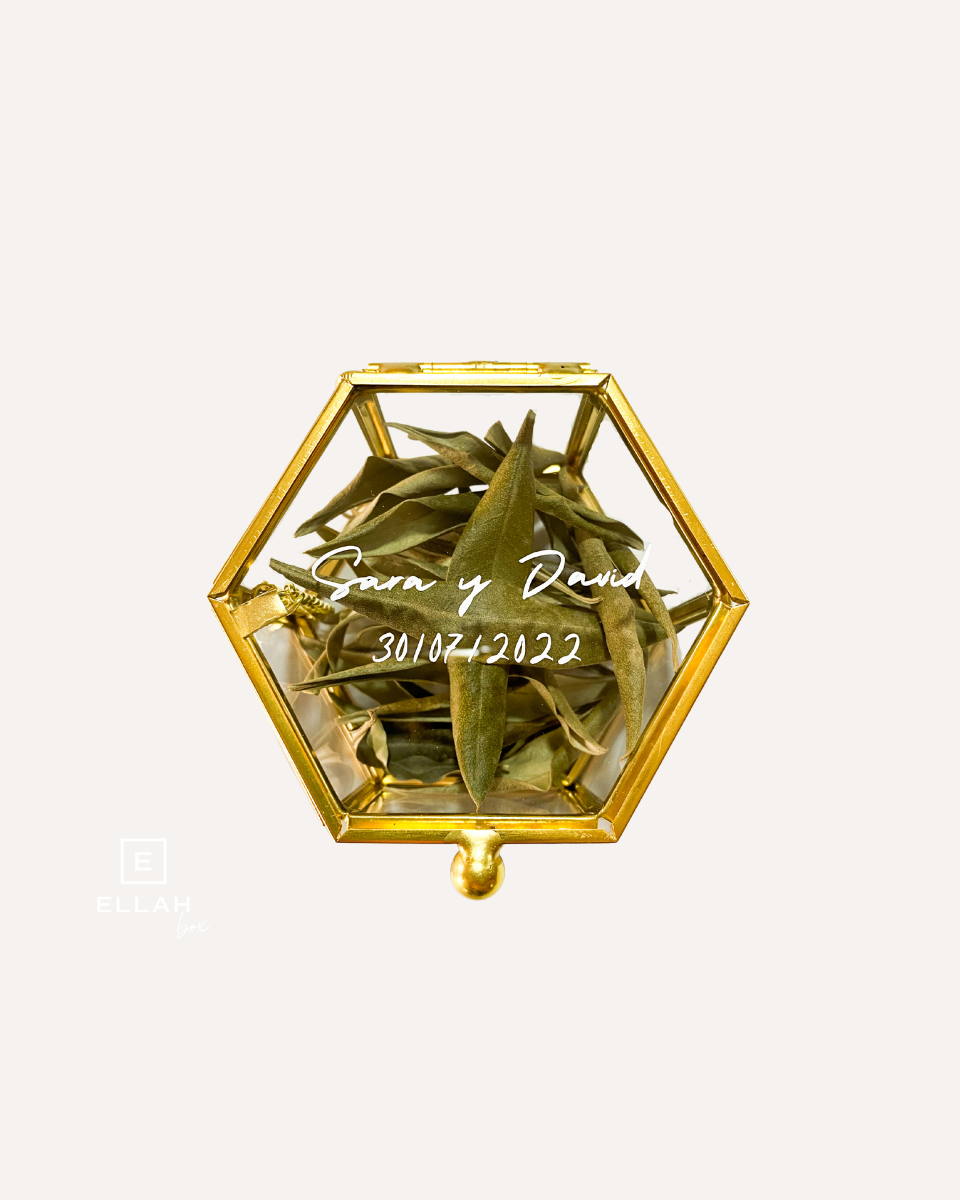 ⭐ Esta cajita de cristal para los anillos tiene el tamaño perfecto para las alianzas y puedes colocar dentro el relleno que quieras. Si tu estilo es rústico quizás estés pensando en ponerle hojas de olivo, de laurel, madera... Pero si más bien te defines como romántica, unas preciosas flores irán con tu estilo.