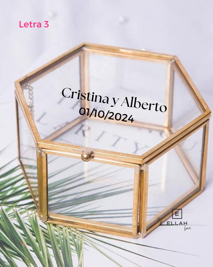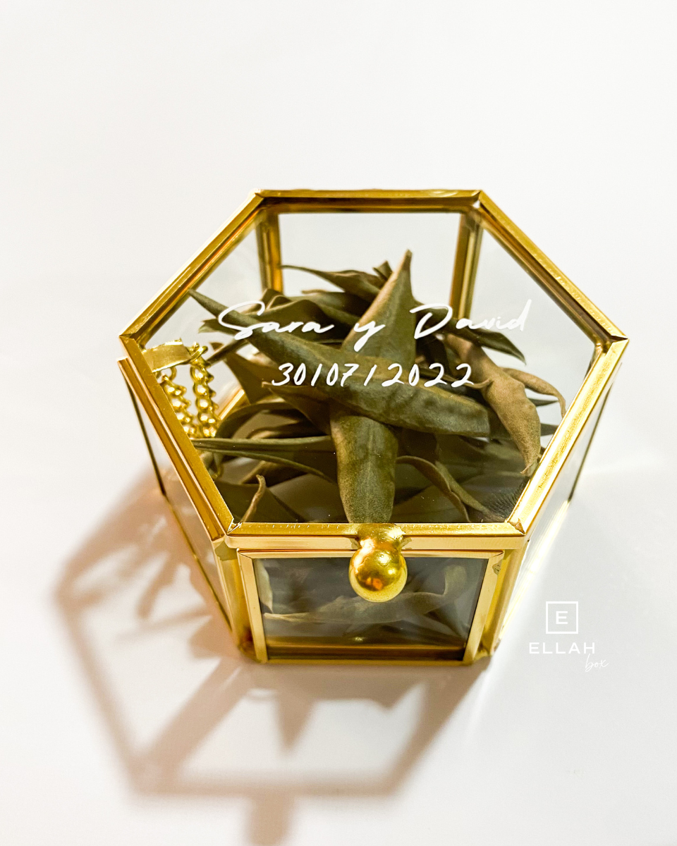 🤍 Cajita porta alianzas de cristal personalizado para llevar tus anillos de boda o bien las arras.