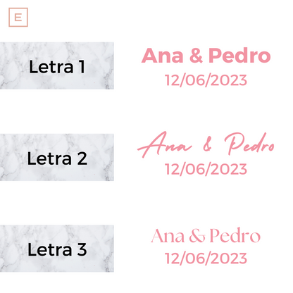 - Tu nombre, fecha de la boda o la frase que escojas vendrá estampada en vinilo de alta calidad, especial para vidrio.