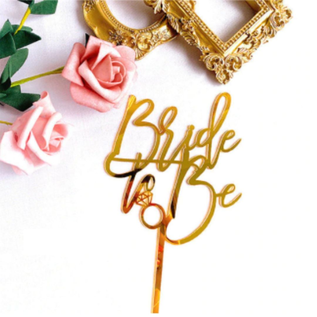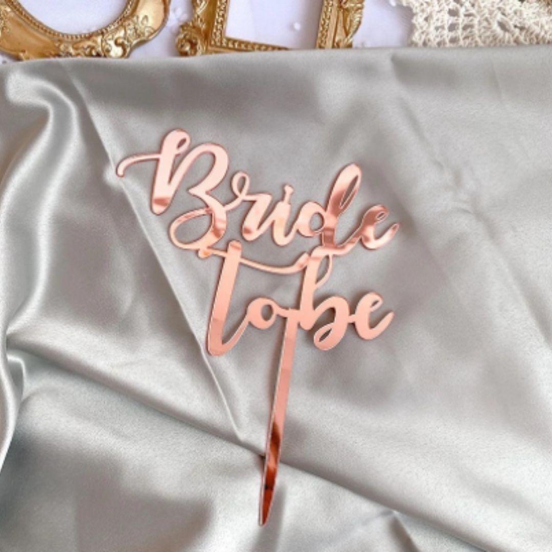 Topper de metacrilato: disponible en color dorado y color oro rosa. Con la inscripción Bride To Be.