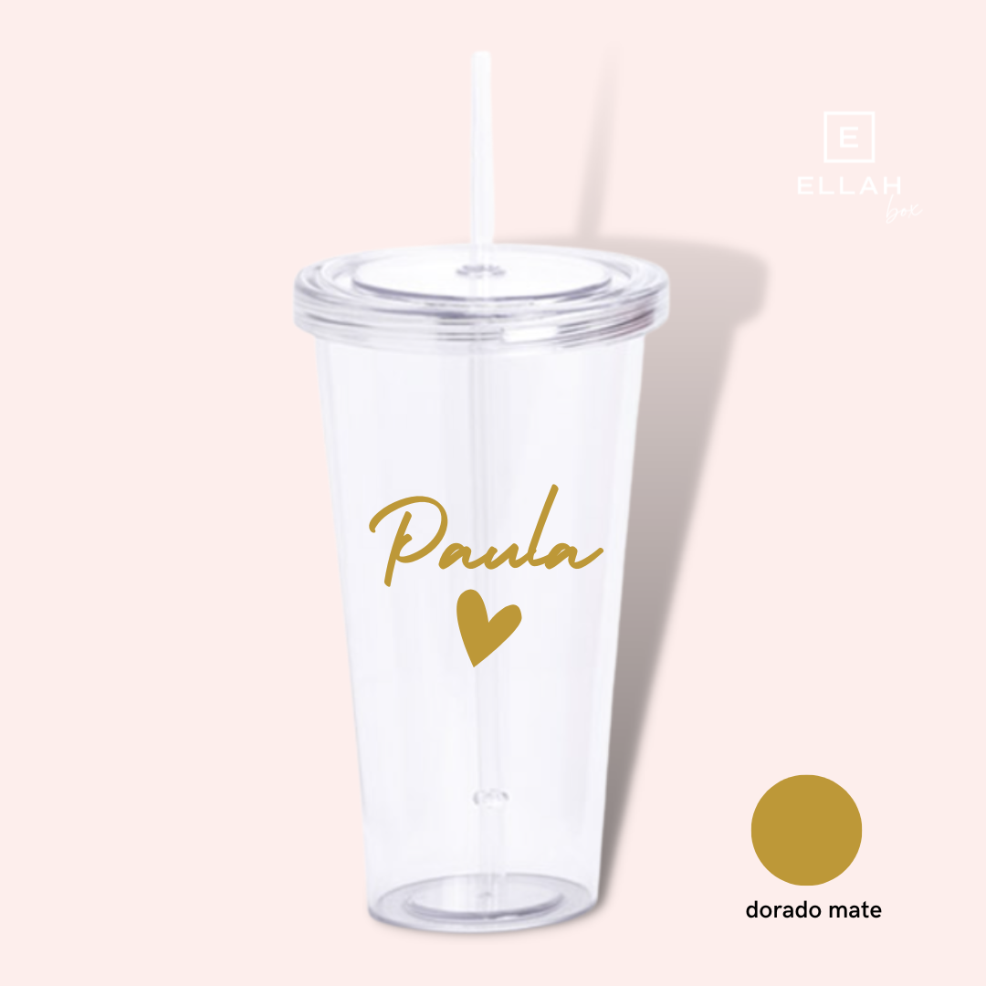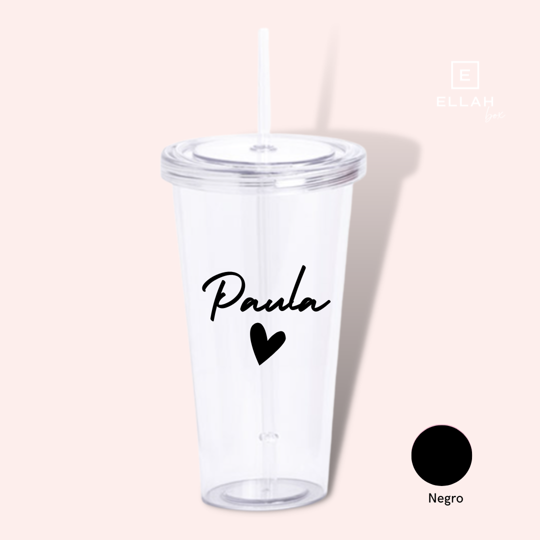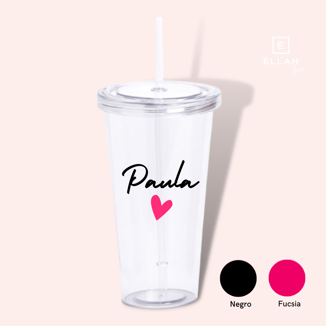 ⭐ Divertido vaso de 750ml de capacidad con cuerpo transparente e inscripción en el color que tú elijas. Con tapa a rosca premium (no vierte el contenido) y pajita a juego.