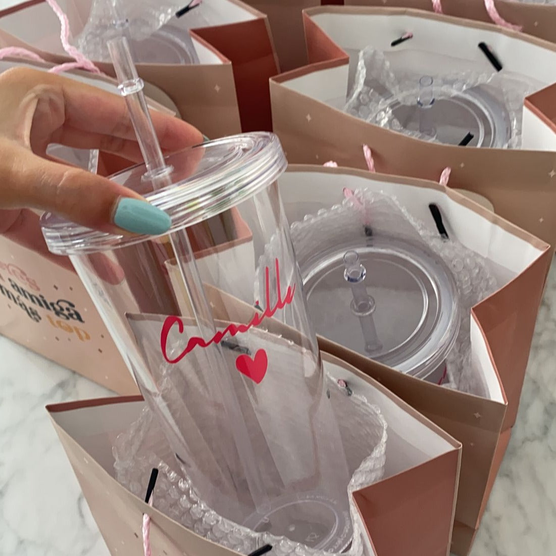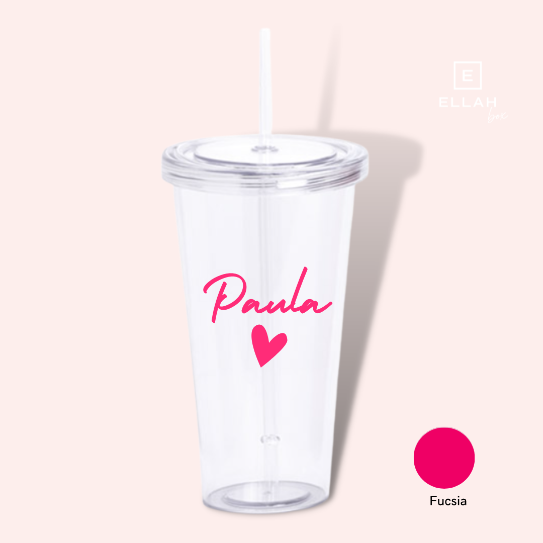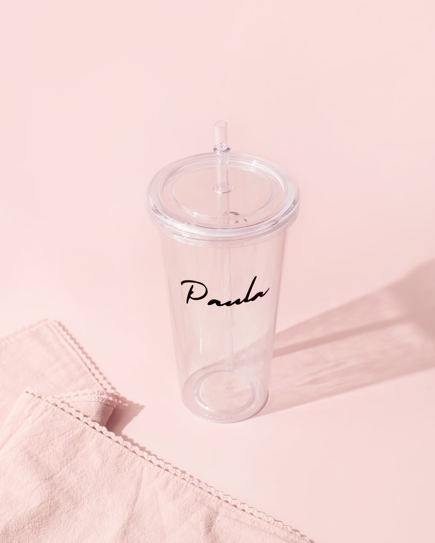 ⭐ Divertido vaso de 750ml de capacidad con cuerpo transparente e inscripción en el color que tú elijas. Con tapa a rosca premium (no vierte el contenido) y pajita a juego.